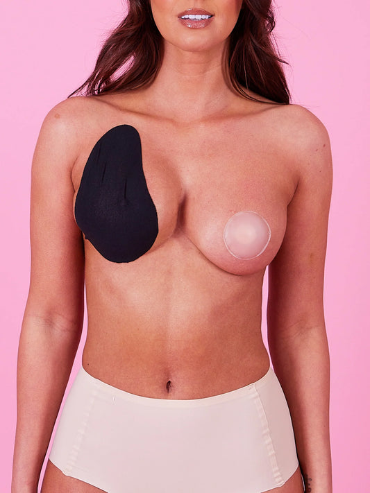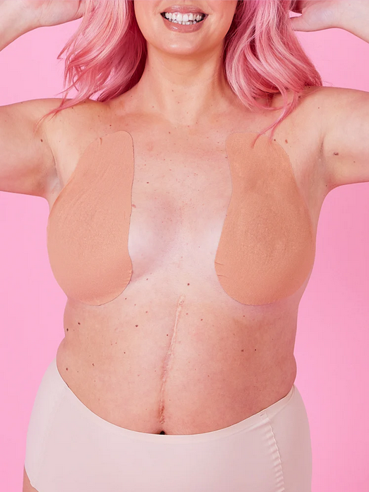 Perky Pear Original Lift & Shape Tape comes in cup sizes but sometimes you may need to size up or down depending on the width of your breasts.