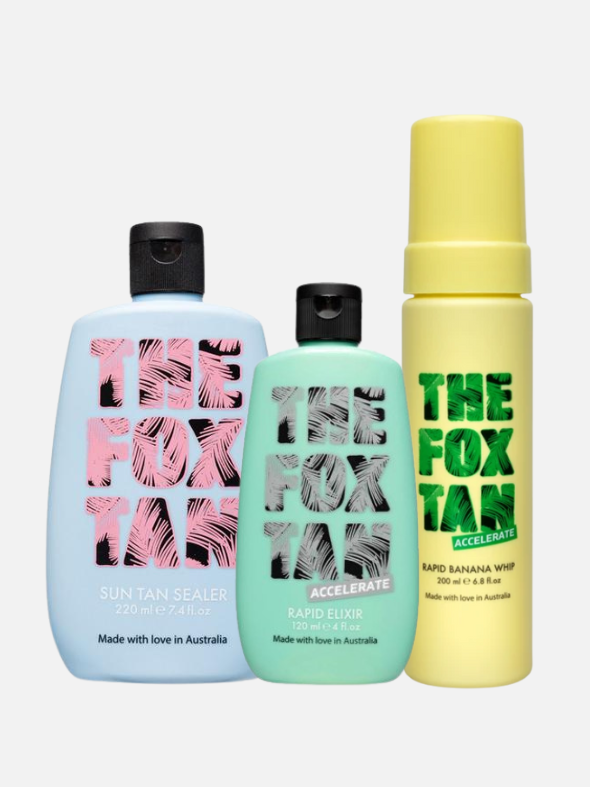 We put this amazing and very a-peeling bundle together for the babe that needs the Fox Tan favs, NOW! This is the ultimate way to achieve your deepest, darkest tan, that lasts all summer long. Seriously. It starts with our infamous original duo – the Rapid Elixir, and our Sun Tan Sealer.